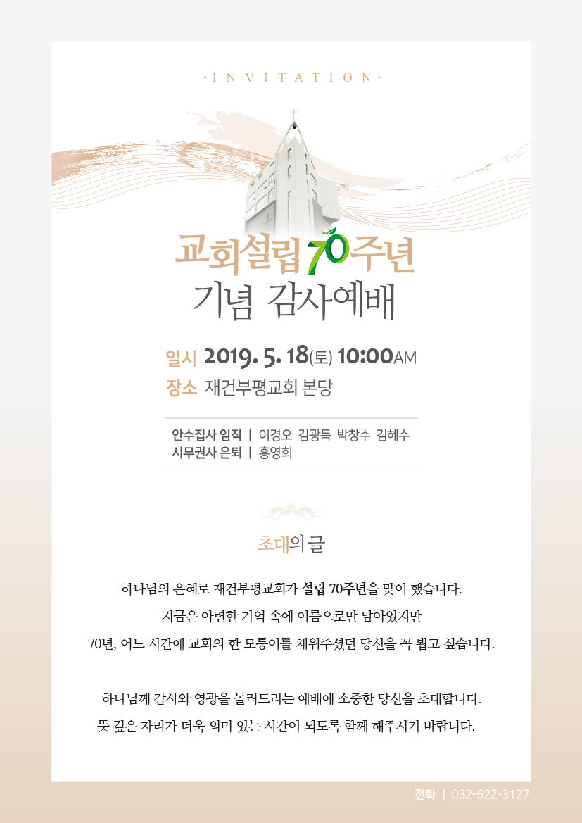 하나님의 은혜로 재건부평교회가 설립70주년을 맞이했습니다.